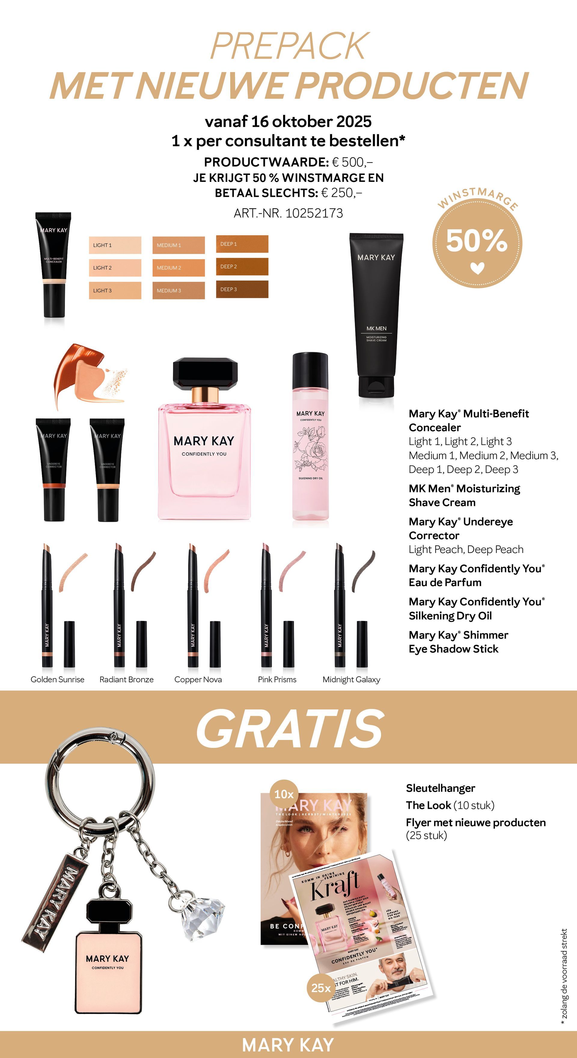 - Plaats je eerste bestelling ter waarde van minimaal €1000 aan producten (serie 1)? Dan ontvang je als extra een schoonheidsconsulente-pin, die bij je bestelling wordt meegeleverd.